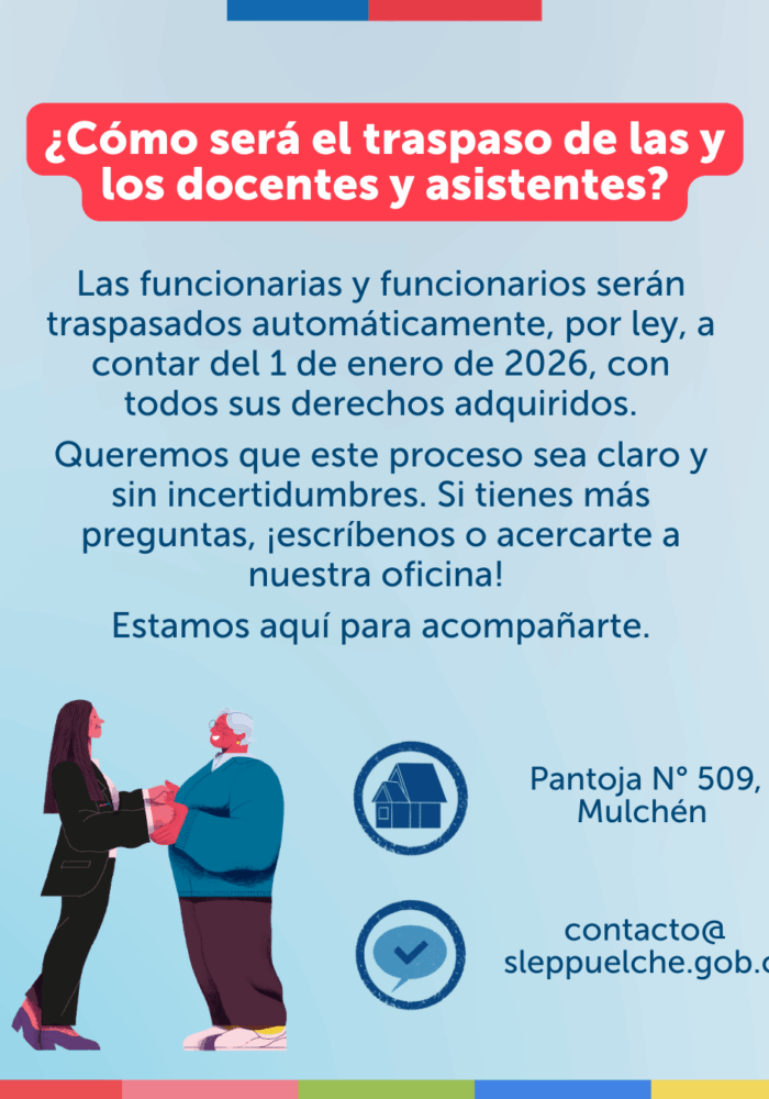 Se traspasan docentes y asistentes de la educación que trabajaban en los establecimientos municipales.